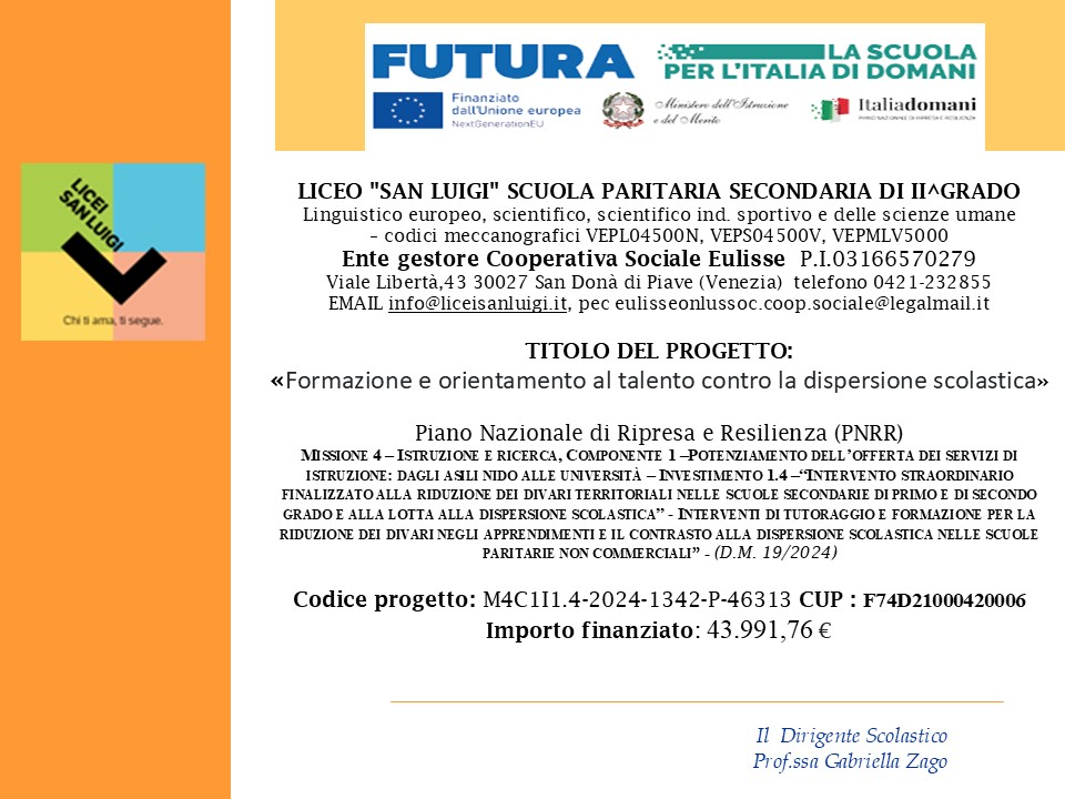 TITOLO DEL PROGETTO: «Formazione e orientamento al talento contro la dispersione scolastica»